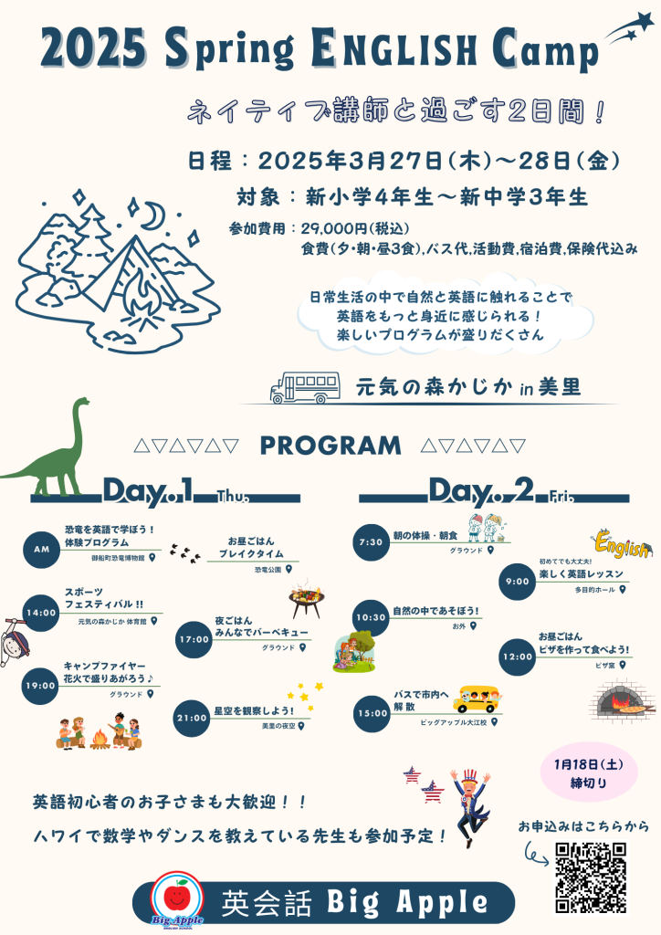 デイトリップに変更になりました。27日のみです。熊本県にある英会話「Big Apple」さんが主催する Spring English Camp のお手伝いをさせていただくことになりました!